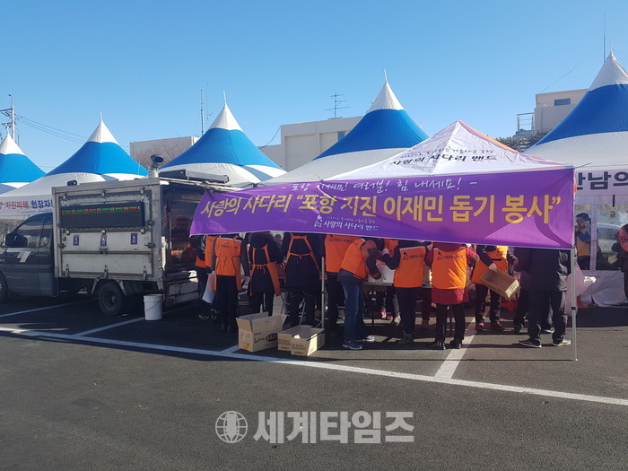 6천명의 회원들이 활동하고 있는 SNS 봉사단체인 사랑의 사다리 밴드(리더 이정제)는 25일 크리스마스에 포항으로 내려가 바베큐 통닭 400마리로 봉사로 우리 사회의 따뜻한 사랑을 전했다.