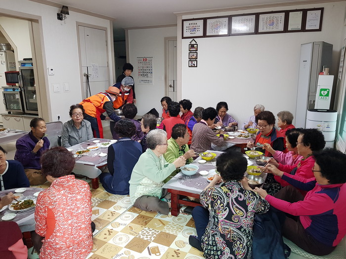 이날 봉사에는 유희자 단장을 비롯해서 회원 10명이 삼계탕, 닭죽, 묵무침, 부침개를 만들어서 50명의 어르신들에게 점심식사를 대접하였다.