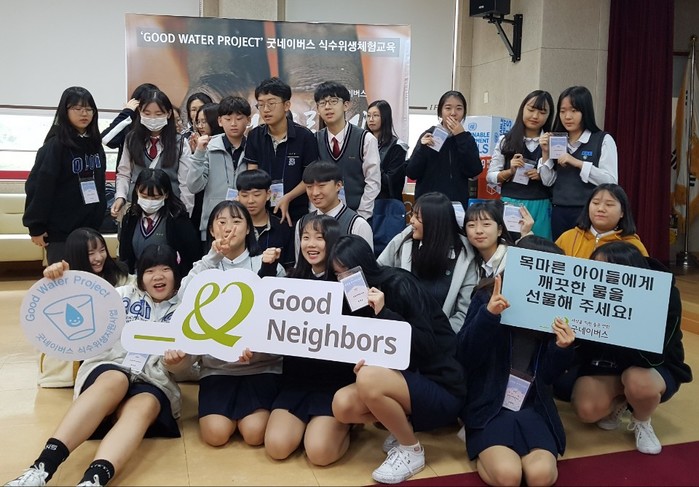 굿네이버스 인천본부(본부장 김기영)에서 진행한 「굿워터 프로젝트 체험교육」담당자 굿네이버스 김아영 대리의 소감이다. 굿네이버스 인천본부는 인천광역시교육연수원에서 주최한 2019 중학생 세계시민캠프에서 굿워터 프로젝트 체험교육을 인천소재 중학교 1학년 200여명을 대상으로 10월 17일, 10월 28~29일 3일간 진행하였다고 밝혔다.