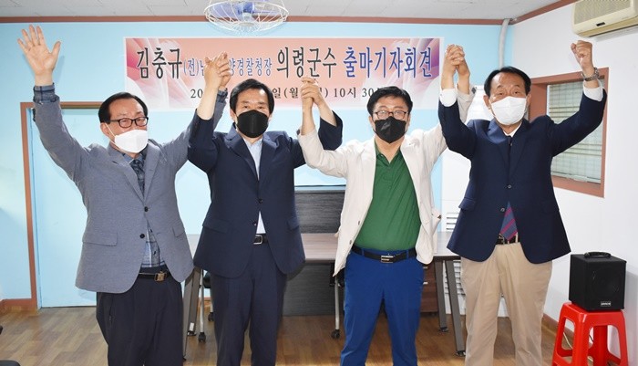 김 전 청장은 이어 "전직 한우상, 김채용 두 군수와 김정권 전 국회의원 그리고 의령을 사랑하는 지지자들의 강력한 요청을 뿌리칠 수 없었고 위기의 고향 의령을 차마 외면할 수 없어 출마하게 됐다"고 출마 배경을 밝혔다.