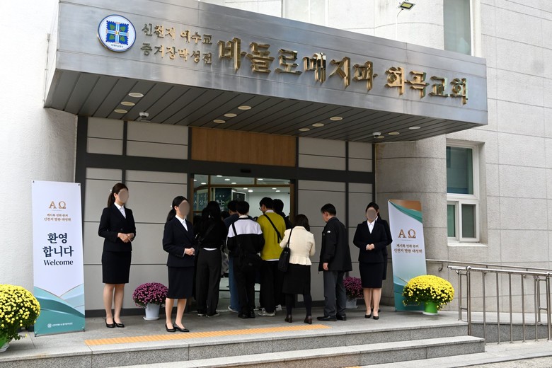 이날 현장을 찾은 외부 인사들을 위해 신천지 화곡교회에선 특별한 환영 퍼포먼스를 진행했다. 1층 정문에서 청년들이 직접 나서 ‘말씀대성회에 오신 목회자님들 환영합니다’, ‘(신천지) 화곡교회에 오신 걸 환영합니다’, ‘We are one 우리는 하나!’와 같은 환영 팻말을 들어 입장하는 목회자들을 반겼다.