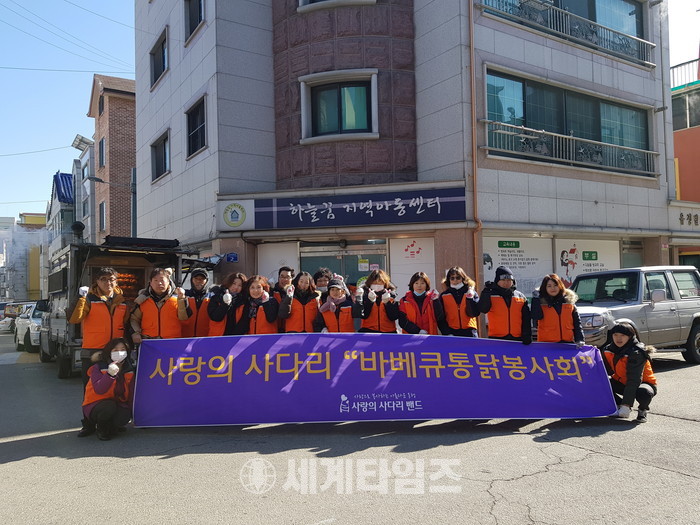 사랑의 사다리 밴드의 바베큐 통닭 봉사는 작년 12월25일에도 포항으로 직접 내려가서 포항 이재민들을 위하여 400마리 봉사도 하면서 추운겨울에 우리 사회 구석구석에 따뜻한 사랑을 나누고 있다.