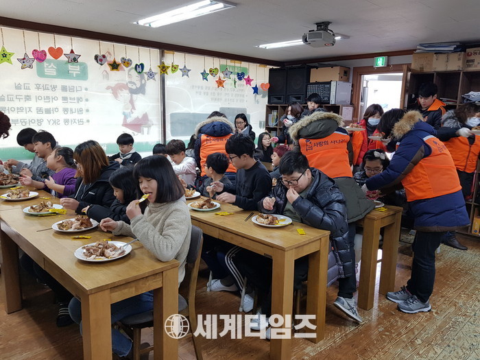 신상일 회장은 “열악한 환경에서도 열심히 공부하는 아이들이 뜨끈뜨끈한 통닭을 맛있게 먹는 모습에서 행복과 보람을 느낀다.“고 말했다.