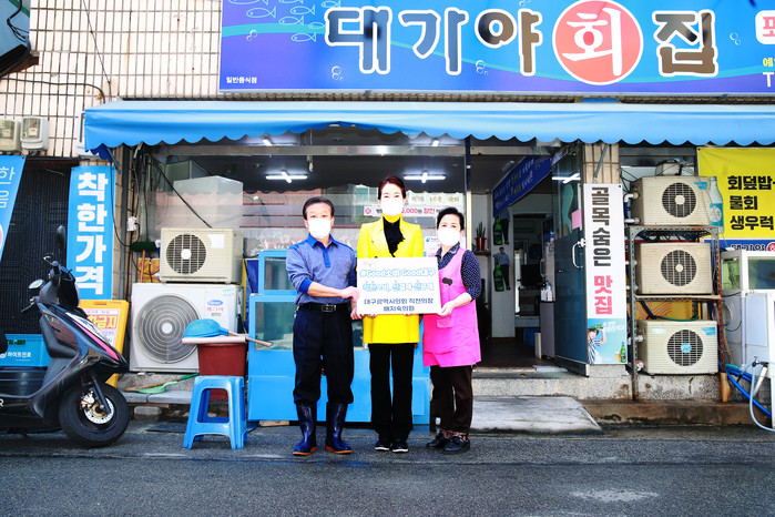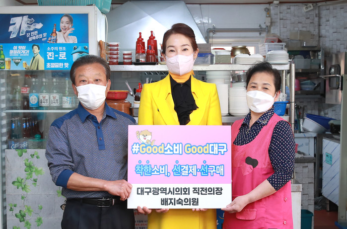 [대구=세계타임즈 한성국 기자] 대구광역시의회 배지숙 의원(前의장, 달서구6)이 4월 26일(월) 코로나19로 침체된 소상공인을 돕고 지역경제에 힘을 보태고자 '#Good소비 Good대구' 챌린지에 동참했다.