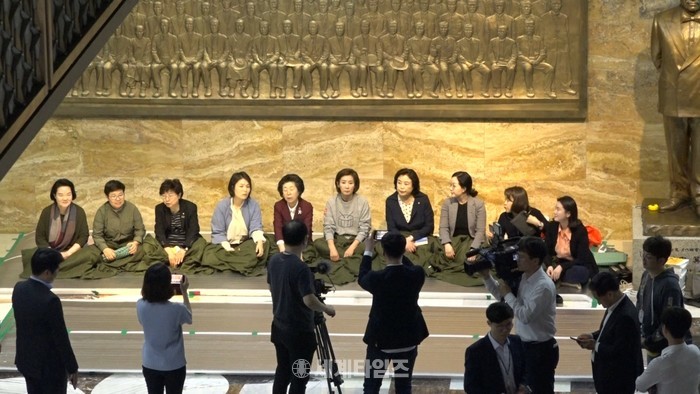 | ▲ 자유한국당 여성의원들이 로텐더홀에서 철야 농성을 벌이고 있다. |