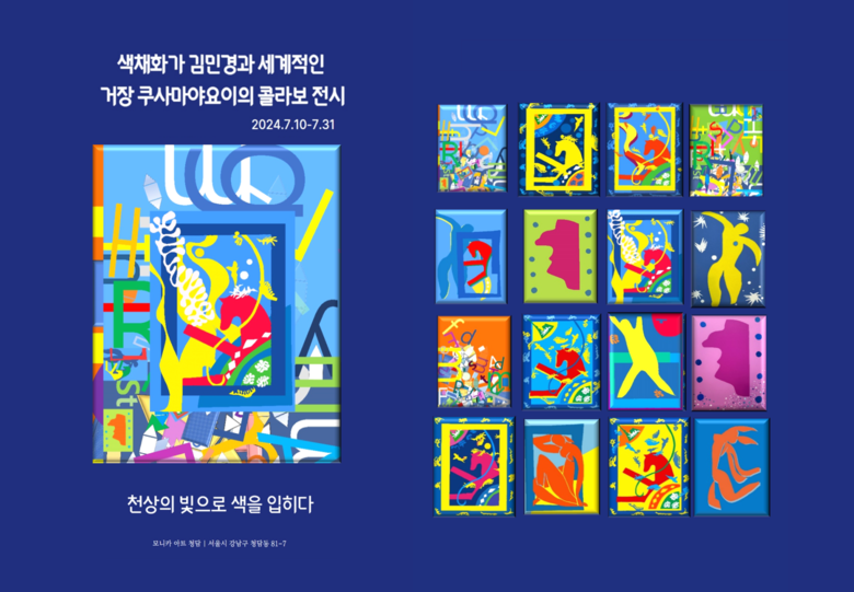 [세계타임즈 = 백진욱 기자] 앙리 마티스의 작품을 현대적으로 재해석하여 '색채화가'로 명성을 쌓은 김민경 작가가 세계적인 예술 거장 쿠사마 야요이와 손을 잡고, '천상의 빛으로 색을 입히다'라는 콜라보 전시를 개최한다. 전시는 7월 10일부터 7월 31일까지 청담동에 위치한 모니카 아트 청담에서 열린다.