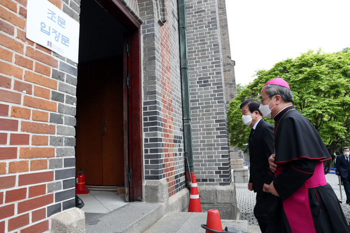 조문을 마친 박 의장은 염수정 추기경과 차담을 갖고 위로의 뜻을 전했다