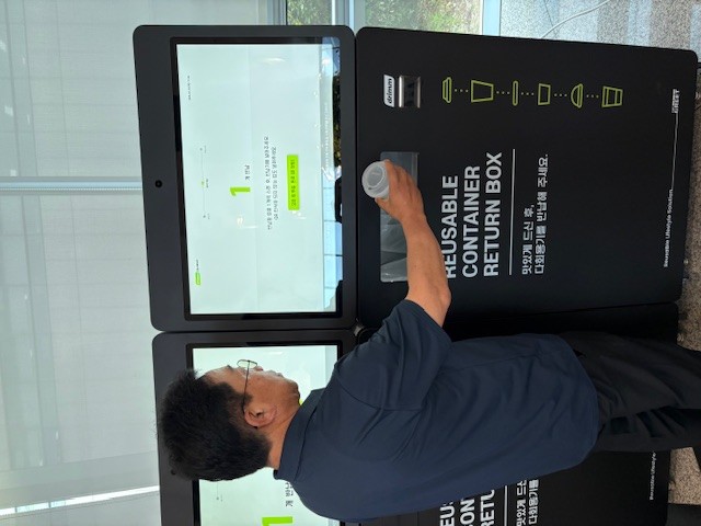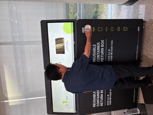 보증금제는 음료 구매 시 다회용컵을 선택하면 1000원의 보증금을 함께 내고, 음용 후 무인 회수기에 컵을 반납하면 보증금이 계좌이체를 통해 실시간 환급되는 구조다.