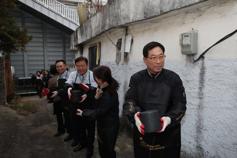 최종오 의장을 비롯한 의원들은 익산시노인종합복지관(관장 김병기)에 연탄 약 1,500장을 기탁하고 소외계층 가구를 찾아 직접 연탄을 배달하며 구슬땀을 흘렸다.