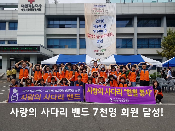 지난 2016년 8월8일 시작한 사랑의 사다리 밴드는 밴드개설 7시간 만에 “회원가입 1천명”을 달성하는 경이적인 기록을 시작으로 마침내 “7천명 회원가입 달성”의 대기록을 23개월 만에 세운 것이다.