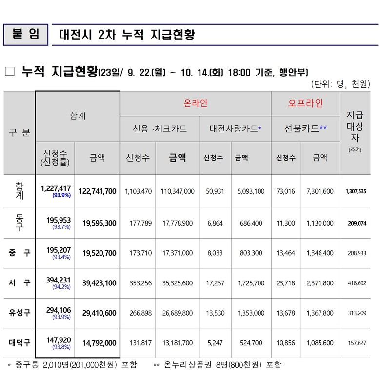 권경민 대전시 경제국장은 “지급 마감 시한까지 보름여가 남지 않은 상황이다. 최대한 많은 대전 시민이 민생 회복의 혜택을 누릴 수 있도록 마지막까지 챙겨나갈 것”이라며 말했다.