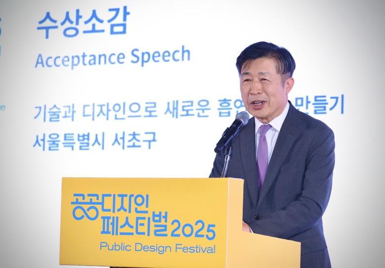 [서초구 세계타임즈=이장성 기자] 서울 서초구(구청장 전성수)는 10월 24일 코사이어티 서울숲에서 열린 「2025 대한민국 공공디자인대상」 시상식에서 대상인 대통령상을 수상했다고 밝혔다. 이번 공공디자인대상 대통령상 수상은 2020년 ‘언택트 선별진료소’에 이은 두 번째 수상으로, 서초구의 선도적 디자인 역량을 다시 한번 입증했다는 평가다.