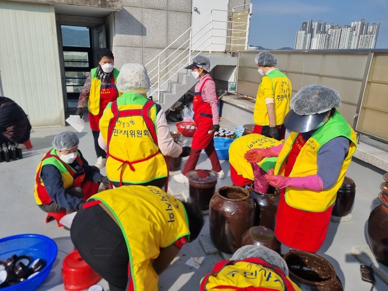 그동안 시흥3동 주민자치회는 된장과 간장을 나누기 위해 많은 과정을 거쳤다. 올 2월에 주민센터 옥상에 ‘나눔장독대’를 마련한 후 온도와 습도, 위생관리를 철저히 했다. 따사로운 햇살과 바람 속에서 주민자치위원들이 정성을 다해 8개월간 ‘장’을 숙성시켰다. 지난 8월에는 나눔에 사용될 된장과 간장이 안정성 검사에서 모두 적합 판정을 받았다.