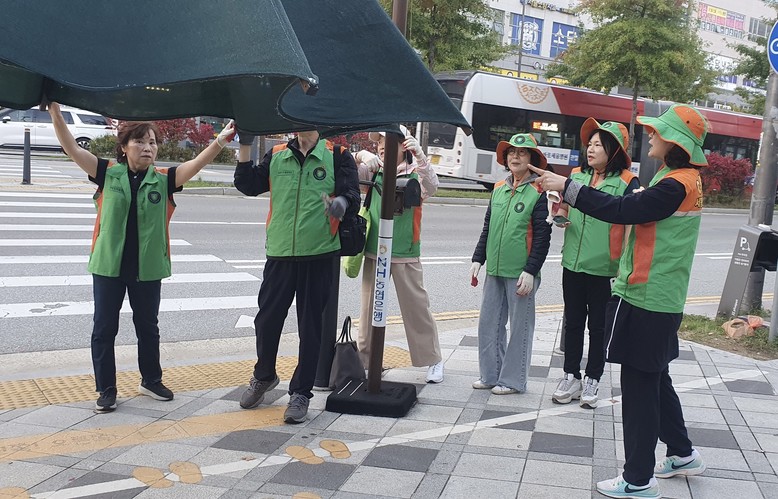 지난 16일에는 활동을 마무리하며 보행자 안전에 지장이 없도록 그늘막을 보관했다.
