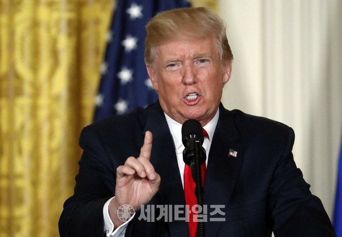 도널드 트럼프 미국 대통령이 28일(현지시간) 백악관에서 사울리 니니스토 핀란드 대통령과 공동 기자회견을 진행하고 있다. 2017.8.29.
