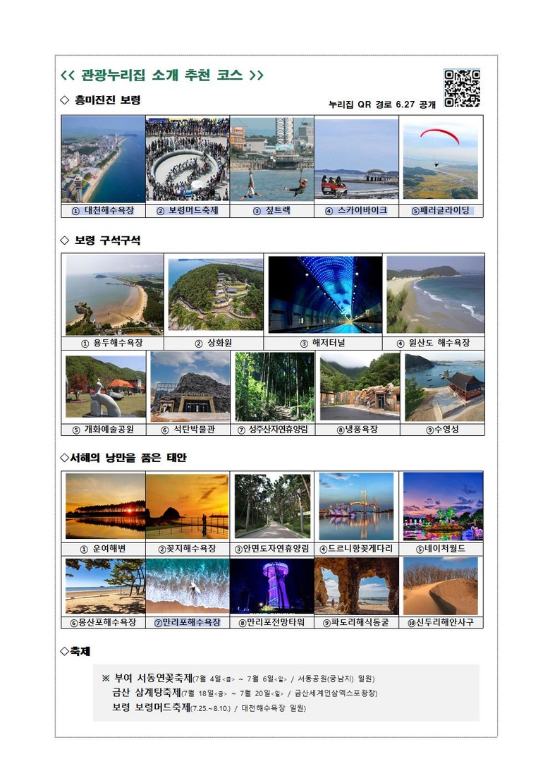 기타 관광 명소·축제 정보는 충남 관광 누리집(https://tour.chungnam.go.kr/prog/theme/kor/sub01_03_04/list.do) 또는 월간 충남 7월호 정보무늬(QR코드)를 통해 확인할 수 있다.