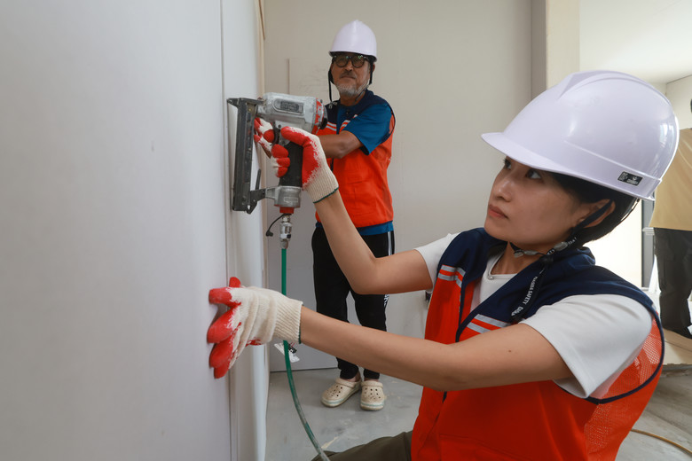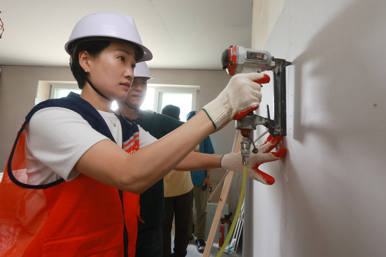 이날 현장에서는 황진상 적하리 이장과 마을 봉사자 등이 참여해, 옥천군 5남매 가정 주택의 방문 경첩 연결, 도배 보조 등 리모델링 공사 마무리 작업에 힘을 보탰다.