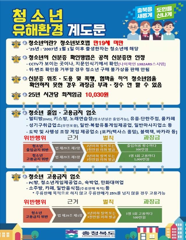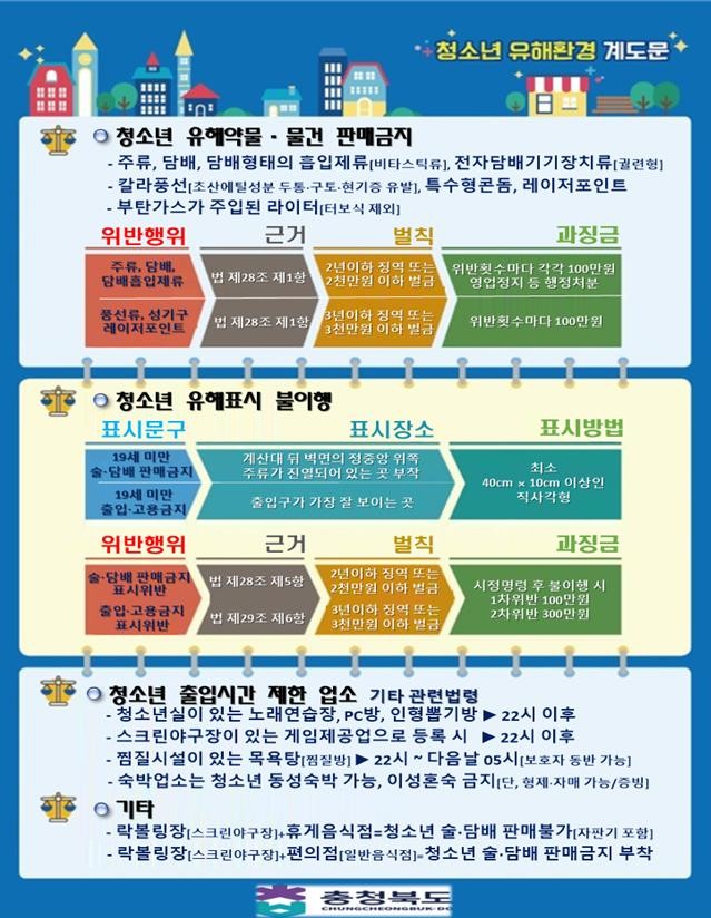 청소년 보호를 위한 단속도 병행된다. 주요 점검 사항은 ▲청소년 출입‧고용이 금지된 업소에 청소년을 출입시키는 행위 ▲노래방‧PC방 등의 청소년 출입 가능 시간 준수 여부 ▲불법 유해 광고물 배포 행위 ▲청소년에게 주류나 담배 등 유해 약물을 판매하는 행위 등이다.