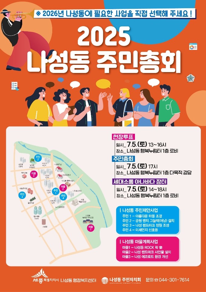 한선영 주민자치회장은 “주민총회는 마을의 미래를 주민 스스로 설계하는 뜻깊은 과정”이라며 “많은 주민들이 참여해 더 살기 좋은 나성동을 만들어 나가는 데 힘을 모아주기를 바란다”고 말했다.