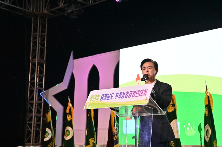 김태흠 지사는 3일 부여 구드래나루터 둔치에서 열린 제18회 한국후계농업경영인 충남도대회 개회식에 참석해 행사 개최를 축하하고 지역 농업인들을 격려했다.