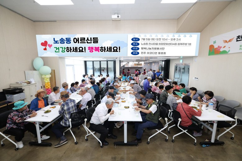 이번 행사는 지역 어르신들과 함께한 봉사단의 마음을 담아 무더위를 건강하게 이겨낼 수 있도록 정성껏 준비한 보신 닭죽과 후식으로 과일까지 한 끼 식사를 푸짐하게 대접했다.식사 후에는 건강과 행복을 기원하는 문화 공연 및 다양한 프로그램을 선사했다.