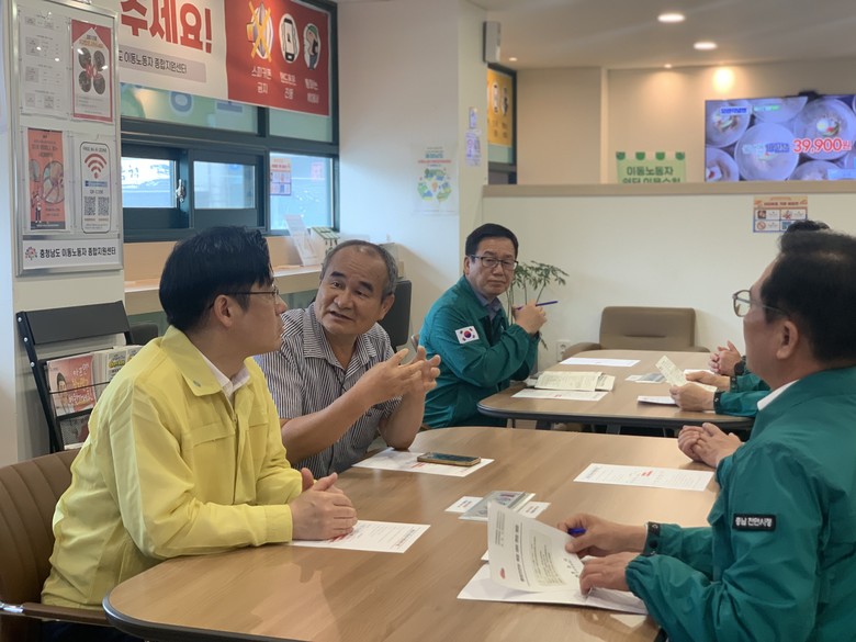 이번 점검은 최근 지속되는 폭염 속 옥외에서 장시간 근무하는 이동노동자의 건강과 안전을 확보하기 위한 것으로, 천안시 동남구 일대에 마련된 이동노동자 종합지원센터를 중심으로 진행됐다.