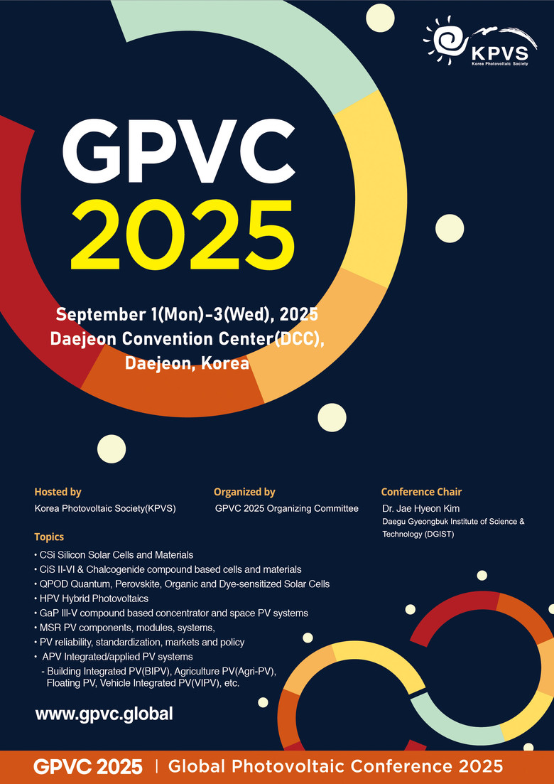 -‘Women in PV’ 네트워킹·2026 세계태양광총회 성공 개최 시동 - [대전 세계타임즈=이채봉 기자] 대전시와 한국태양광발전학회가 공동 주최한 ‘2025 글로벌태양광학술대회(GPVC 2025)’가 9월 1일부터 3일까지 대전컨벤션센터(DCC)에서 열린다. 전 세계 15개국 700여 명의 석학과 전문가가 참여해 페로브스카이트-실리콘 탠덤, 케스터라이트 등 차세대 태양전지 최신 성과를 공유하고, 건물·농업·수상·모빌리티 등 응용 분야 확산 전략을 논의한다.