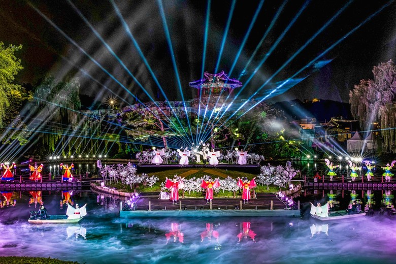 | ▲ 지난해 수원화성문화제 중 용연에서 수중 퍼포먼스를 선보이는 ‘선유몽’ 공연 장면. |