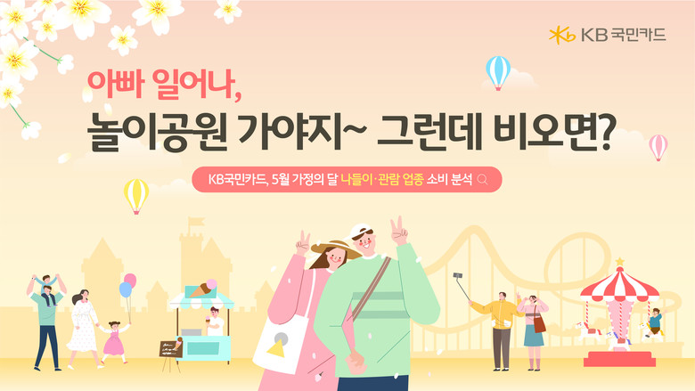 KB국민카드 데이터사업그룹 관계자는“어린이날 매출 분석을 통해 세대별, 가족 구성에 따라 다양한 장소에서 가정의 달 5월을 보내고 있는 것을 알 수 있었다.”며 “5월 나들이 계획을 세울 때 우천시 대비책을 마련해 둔다면 이번 어린이날 가족 나들이는 더 즐거울 것이다.”라고 말했다.