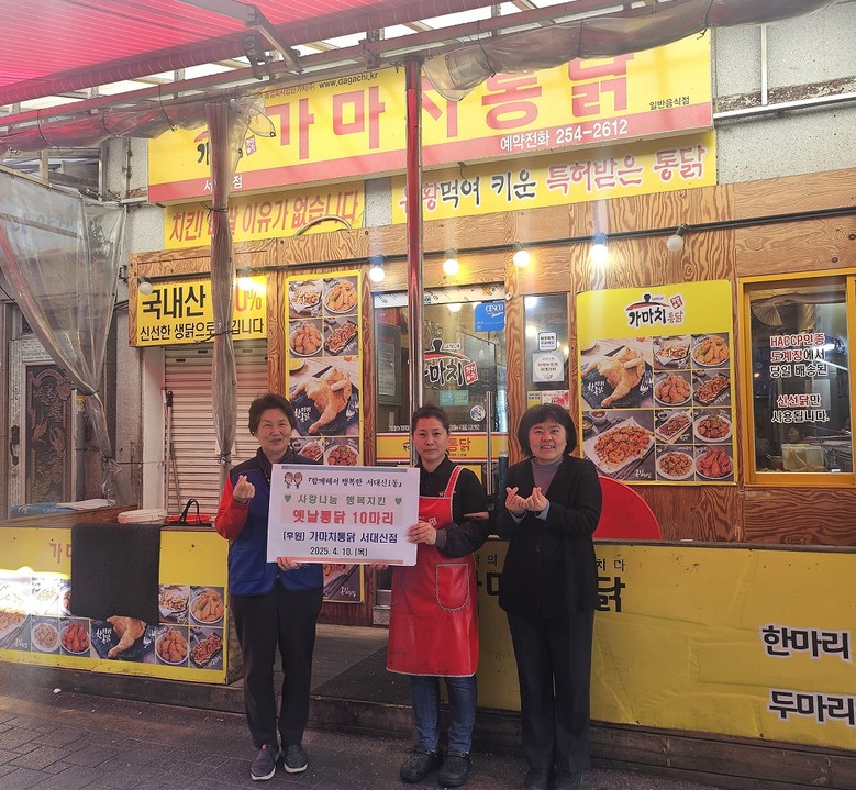 [서구 세계타임즈=이용우 기자] 부산 서구 서대신1동은 지난 10일, 가마치통닭 서대신점(대표 김미효)의 후원을 받아 지역 내 한부모가정, 1인 독거가구 등 취약계층에 옛날 통닭 10마리를 전달하고, 안부 확인과 따뜻한 이웃사랑을 전하였다.