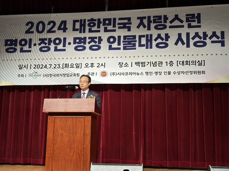 [세계타임즈]최성룡기자 = (사)한국외식창업교육원 주최 시사코리아뉴스 주관으로 2024대한민국 자랑스런 명인.명장 인물대상(大賞) 시상식을 오는 7월23일(화)오후2시 백범기념관에서 개최됐다.