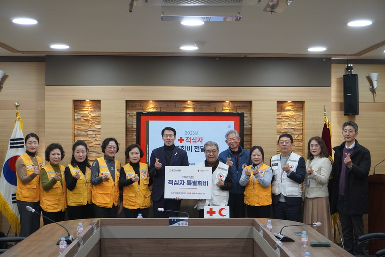 [포천시 세계타임즈=송민수 기자] 포천시의회(의장 임종훈)는 24일 포천시의회 2층 의원회의실에서 2026년도 적십자 특별회비를 전달하며 따뜻한 나눔 문화 확산에 동참했다.