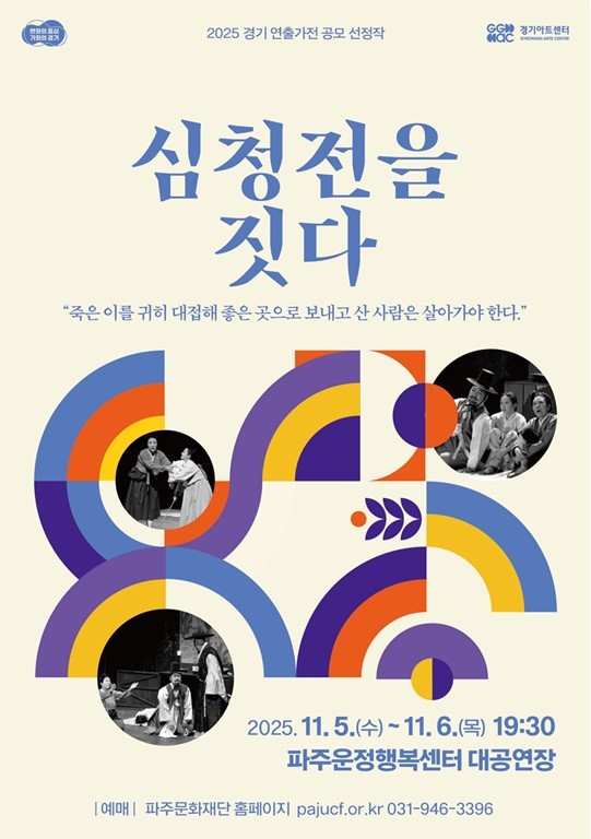 이번 재공연은 경기 아트센터 ‘2025 경기 연출가전’ 공모사업에 선정되어 진행됐으며, 「심청전을 짓다」는 올해 열린 제43회 대한민국연극제 경기도대회에서 단체 대상을 비롯해 개인 대상, 우수 연기상 3관왕에 오르는 큰 성과를 거둔 작품이다.