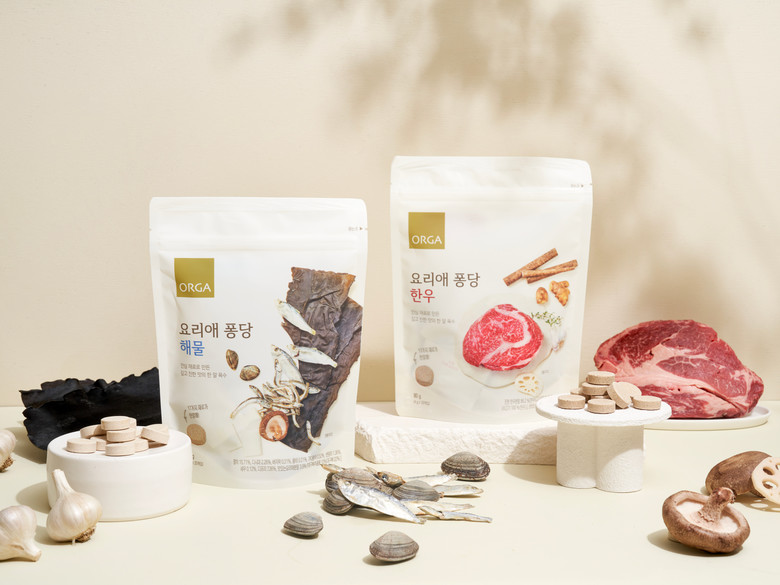 ‘ORGA 요리애 퐁당 한우’는 양파, 대파, 배추, 무 등 10가지 이상의 농수산물과 국내산 한우로 만들어 한우의 깊고 진한 맛을 느낄 수 있다. ‘ORGA 요리애 퐁당 해물’은 멸치, 다시마, 바지락, 새우 등 18가지 원재료를 넣어 해물의 깊은 감칠맛을 낸다. 국물 요리뿐 아니라 볶음, 조림 요리에도 사용하면 깊고 진한 맛을 느낄 수 있다.