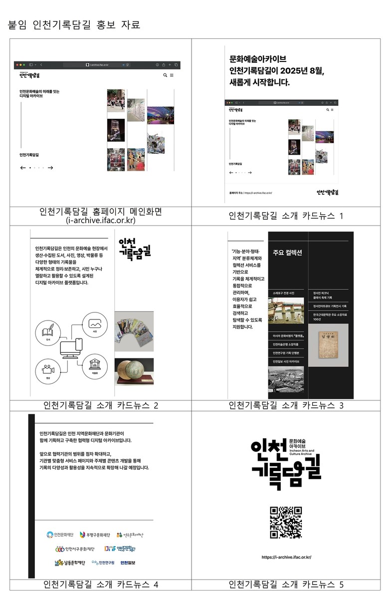 인천문화재단 관계자는 “인천기록담길은 단순한 기록 저장소가 아니라, 문화예술이 만들어낸 기억을 시민과 공유하고 창작·연구·교육으로 확장하는 도시문화 플랫폼”이라며 “앞으로도 지역 문화기관과 긴밀히 협력해 기록을 기반으로 한 도시 정체성 강화와 문화정책 실행 기반 마련에 힘쓰겠다”고 밝혔다.