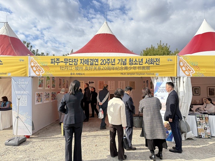 또한 무단장시 실무진은 ‘제29회 파주장단콩축제’ 개막식에 참석했으며, 축제 기간 중 운영된 ‘파주-무단장 자매결연 20주년 기념 청소년 서화전’ 전시 공간을 통해 무단장시 청소년들이 ‘파주-무단장 우정’을 주제로 제작한 그림과 서예 작품을 소개했다. 이번 전시는 양 도시의 우정을 상징하는 뜻깊은 교류 행사로 관람객들의 많은 관심을 모았다.