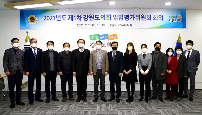 입법평가위원회는 강원도의회의원, 변호사, 법제처, 입법평가 경력자 등 자치입법 및 지방의회에 학식과 경험이 풍부한 전문가 15명으로 구성되었으며 임기는 2년(2021.1.15.~2023.1.14.)이다.