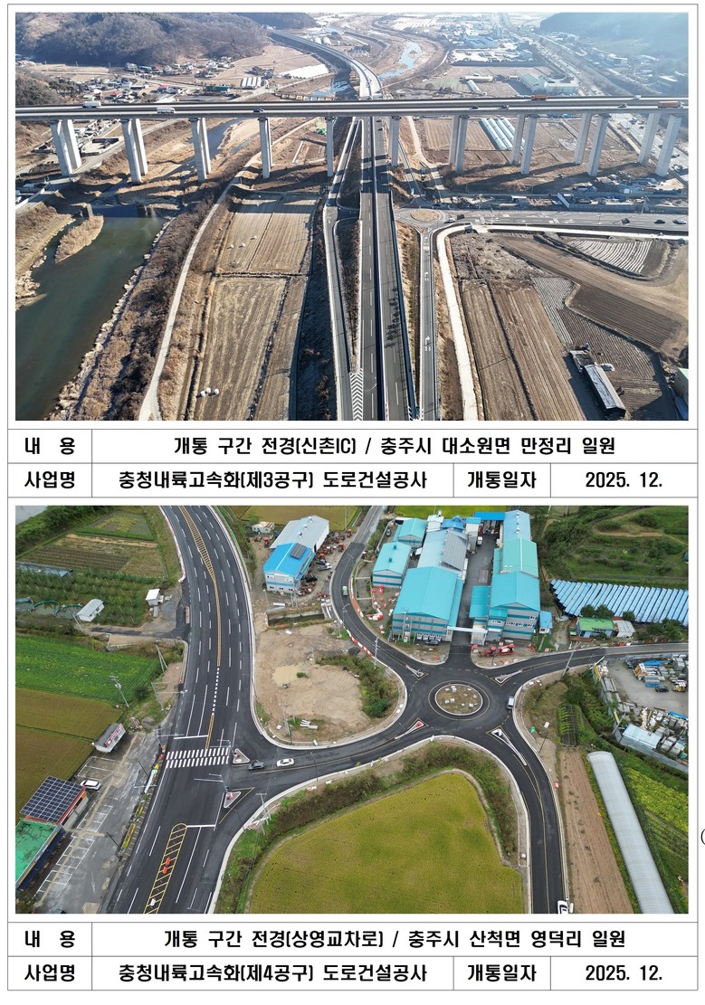 지난해 7월 충청내륙고속화도로 1-1공구(10.5㎞) 개통을 시작으로 잔여구간이 개통됨에 따라 충청내륙고속화도로는 2017년 첫 삽을 뜬 지 8년 만에 57.8㎞ 구간이 완전 개통됐다.