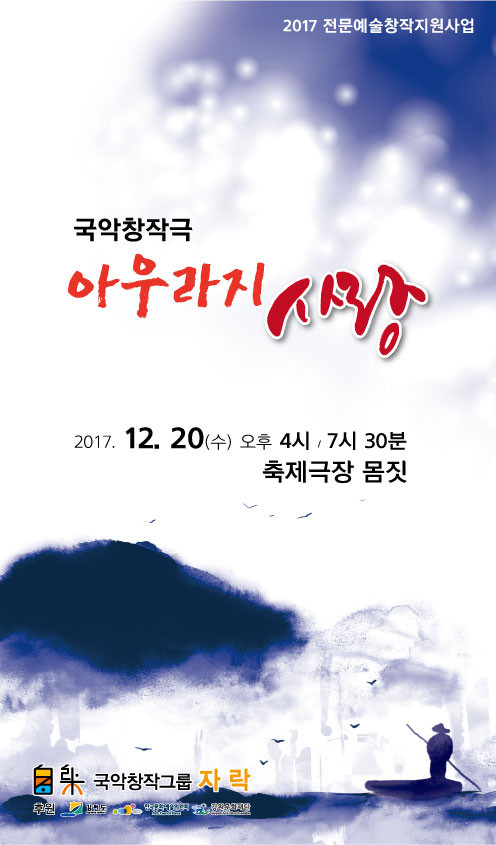 ‘아우라지 사랑’은 박세화, 양흥주, 정윤서, 이승희, 양원혁, 이미란, 김시온, 유태상씨 등 30여명의 무용가와 연극인 및 국악인이 참여하며 2017 전문예술창작지원사업으로 강원도와 한국문화예술위원회, 강원문화재단 함께한다.