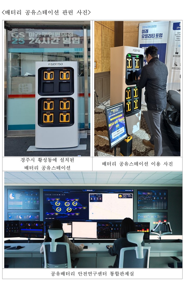 최혁준 경상북도 메타에이아이(Meta AI)과학국장은 “공유배터리 안전연구센터는 전기 이륜차의 배터리 교환을 통해 구매비용 절감과 충전 시간 단축, 안전관리 강화를 동시에 실현할 수 있는 핵심 인프라가 될 것”이라며, “경북이 대한민국 배터리 공유산업의 허브이자 기술 표준 중심지로 성장할 수 있도록 적극 지원하겠다”고 밝혔다.
