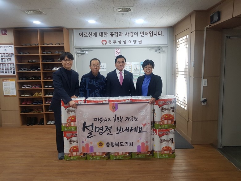 [충북 세계타임즈=이현진 기자] 충북도의회 이종갑 부의장은 설 명절을 맞이하여 1월 13일(금) 충주의 삼성요양원을 방문하여, 위문품을 전달하고 시설 관계자들을 격려하는 등 따뜻한 정을 함께 나누는 설 명절 분위기 조성에 앞장섰다.