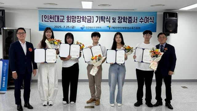 [인천 세계타임즈=심하린 기자] (재)인천인재평생교육진흥원과 인천대교(주)는 지난 25일 ‘2025년도 인천대교 희망 장학금 기탁식 및 장학증서 수여식’을 개최했다고 밝혔다.