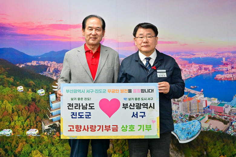 [서구 세계타임즈=이용우 기자] 부산 서구는 지난 8일 전라남도 진도군과 고향사랑기부제 활성화를 위한 상호 기부 행사를 진행하였다.