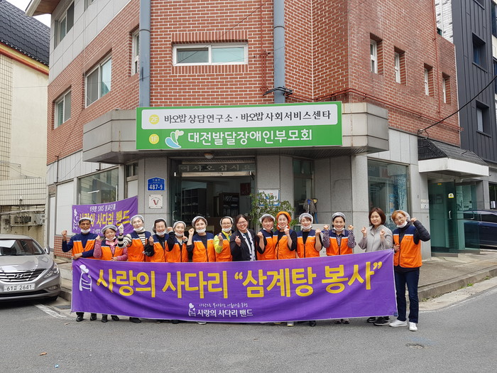 [대전=세계타임즈 이장성 기자] 대전시 SNS 봉사단체 사랑의 사다리 밴드(리더 이정제)는 12일 오전9시, 서구 탄방동에 위치한 대전발달장애인부모협회(회장 김명숙)에서 삼계탕 봉사로 우리 사회의 따뜻한 사랑을 전달하였다.