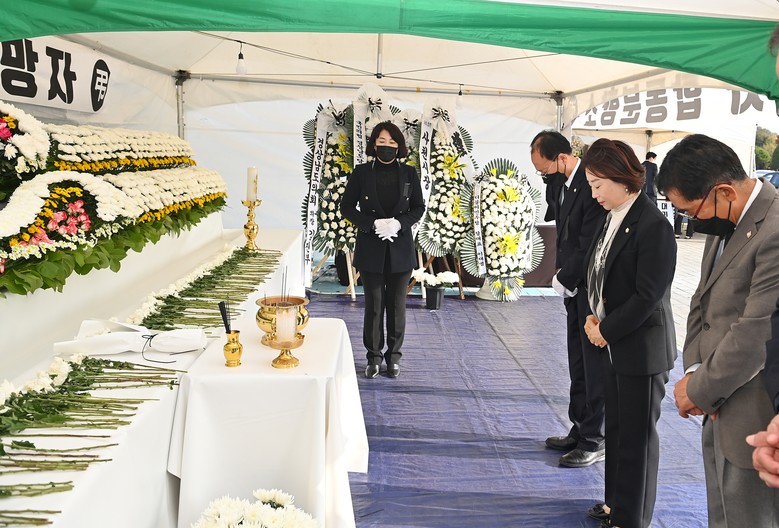 윤 의장은 조문록 작성에 이어 사천시의회를 대표해 분향한 후 참석한 시의원들과 함께 헌화와 묵념으로 고인들의 명복을 빌었다.