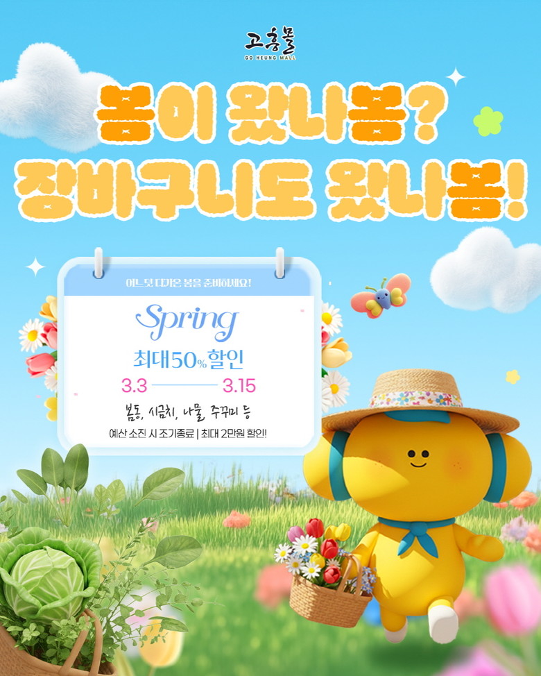 이번 기획전은 본격적인 봄철을 맞아 제철 농수산물을 합리적인 가격에 선보이기 위해 마련됐으며, 오이, 시금치, 봄동, 주꾸미 등 봄철 대표 식재료를 최대 50% 할인 판매한다.
