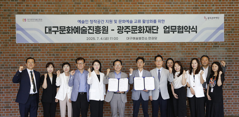 노희용 광주문화재단 대표이사는 “이번 협약은 광주와 대구의 창작 역량이 시너지 효과를 낼 수 있는 좋은 기회”라며, “지역의 경계를 넘어 함께 성장할 수 있는 예술 환경을 만드는 데 최선을 다하겠다”고 전했다.