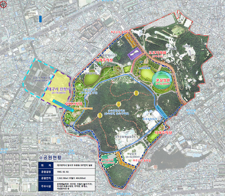 앞으로 대구시는 두류공원에 대한 타당성 조사 및 기본구상 용역을 통해 종합계획과 구역별 세부 실행계획을 수립하고, 타 시도 사례를 분석해 전략적으로 대응할 계획이다.