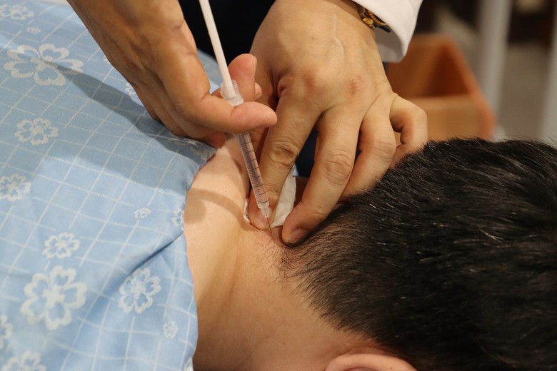 특히 경추질환 환자에게 약침이 효과적이라는 사실은 여러 연구 논문을 통해 과학적으로 입증된 바 있다. 실제 자생한방병원 척추관절연구소가 SCI(E)급 국제학술지 ‘임상의학저널(Journal of Clinical Medicine)’에 게재한 논문에 따르면, 약침 치료는 일반적인 물리치료보다 목 통증 개선에 더 뛰어난 효과를 보이는 것으로 나타났다. 연구팀은 목 통증을 호소하는 환자를 약침 치료군(50명)과 물리 치료군(51명)으로 나눠 치료 경과를 비교했다. 그 결과, 약침 치료군의 목 통증 시각통증척도(VAS; 0~100)가 치료 전 63.9에서 치료 후 30.7로 33.2점 개선됐다. 반면 물리 치료군은 17.4점 감소하는데 그쳤다.