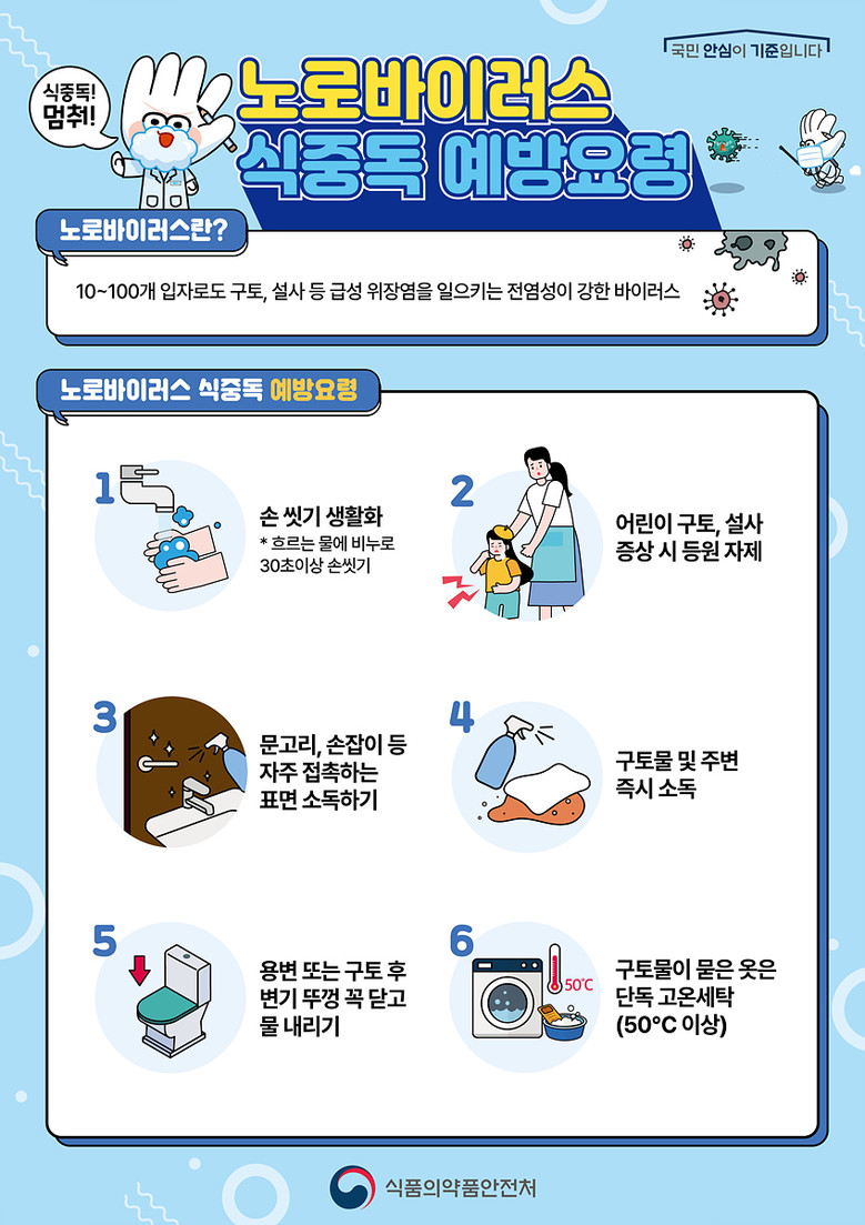 노로바이러스 등 가을철 식중독 예방을 위한 위생 수칙 홍보 활동도 함께 진행된다. 노로바이러스는 소량의 바이러스만으로도 감염될 수 있고 전염력이 강해, 어린이집처럼 집단생활이 이뤄지는 시설에서 각별한 주의가 필요하다.